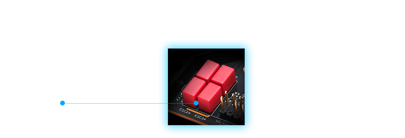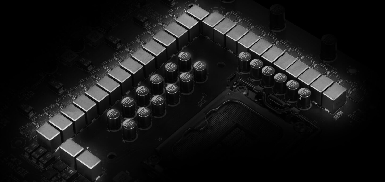 Extra-large aluminum alloy heat sinks that effectively dissipate heat from the VRM to ensure system stability.