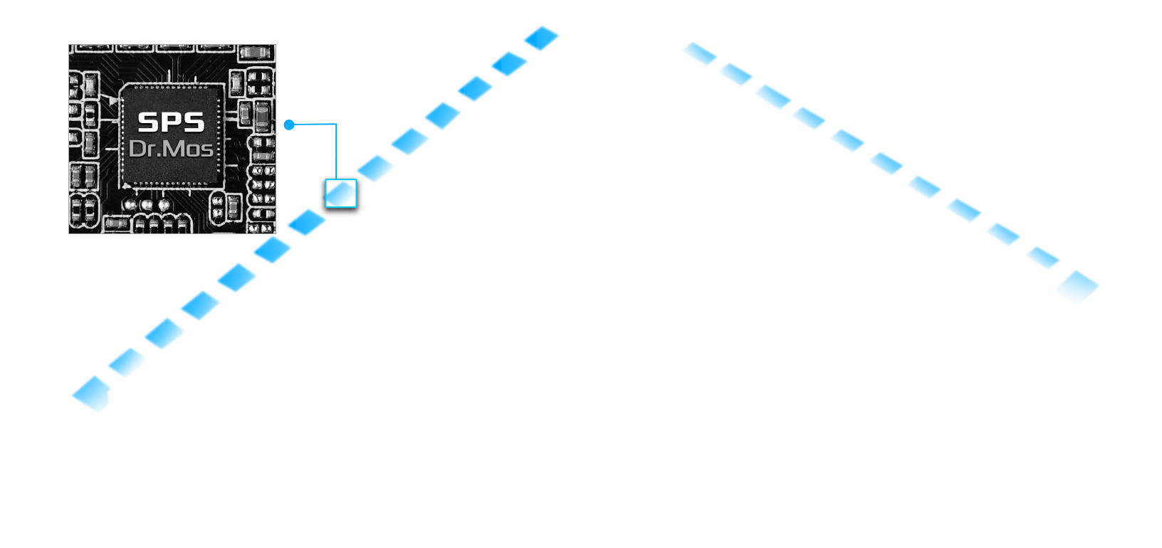 Dr.MOS design features the latest SPS (Smart Power Stage) technology. It’s optimized for monitoring current and temperature of each phase, thus delivering smoother and neater power to the CPU with enhanced performance and OC capability.