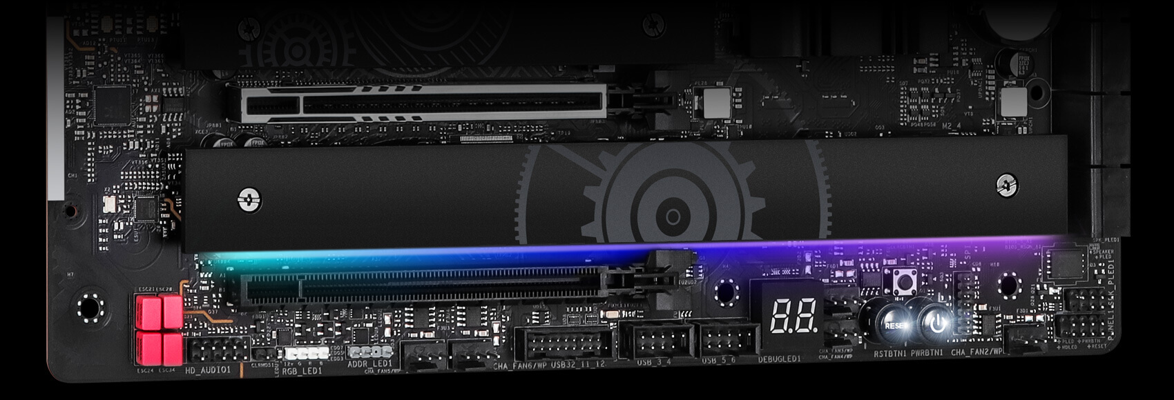 Compares to conventional DIP style PCIe slot, the SMT type PCIe slot improves signal flow and maximize stability under high speed, a key breakthrough to fully support the lighting speed of the latest PCIe 5.0 standard.