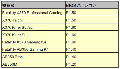 各機種の最新BIOSではCPU Frequency Multiplier Change項目を追加致しました。ASRockダウンロードサイトにて下記の対応表を御参照の上BIOSをアップデートして下さい。 |